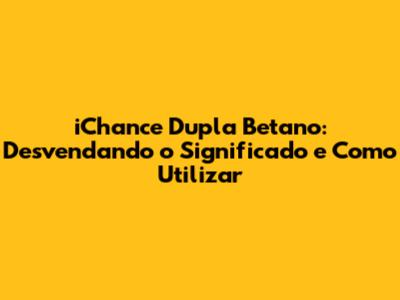 OlĂĄ, pessoal! Se vocĂȘ Ă© fĂŁ de apostas esportivas, provavelmente jĂĄ se deparou com a expressĂŁo "iChance Dupla" no Betano. Mas, afinal, o que significa iChance Dupla Betano? E como vocĂȘ pode usar essa ferramenta a seu favor para aumentar suas chances de ganhar? Neste guia completo, vamos mergulhar fundo nesse recurso, explicando tudo o que vocĂȘ precisa saber para apostar com confiança e estratĂ©gia. Prepare-se para desvendar os segredos da iChance Dupla e transformar suas apostas em experiĂȘncias ainda mais emocionantes e, quem sabe, lucrativas!