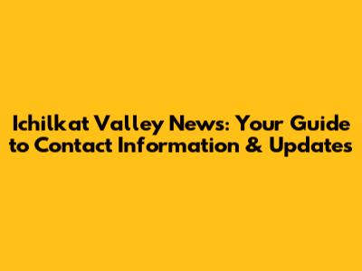 Ichilkat Valley News: Contact Information & Updates