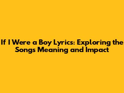 If I Were A Boy Lyrics: A Detailed Look At The Song