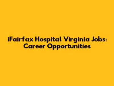 IFairfax Hospital Virginia Jobs: Career Opportunities