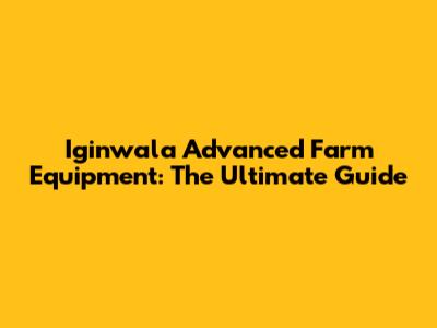 Iginwala Advanced Farm Equipment: The Ultimate Guide