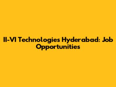 II-VI Technologies Hyderabad: Job Opportunities