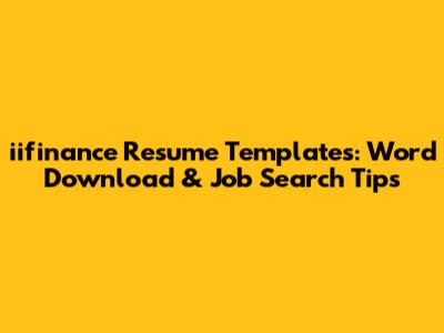 Iifinance Resume Templates: Word Download & Job Search Tips