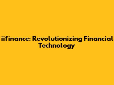 Iifinance: Revolutionizing Financial Technology