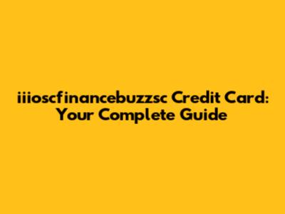 Iiioscfinancebuzzsc Credit Card: Your Guide