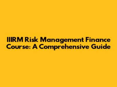 IIIRM Risk Management Finance Course: A Comprehensive Guide