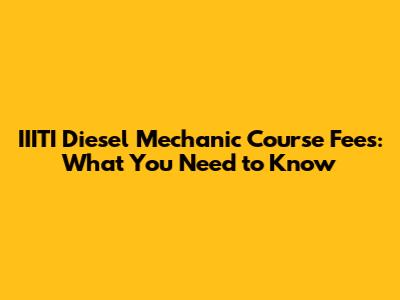 IIITI Diesel Mechanic Course Fees: What You Need To Know