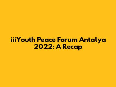 Hey everyone! Let's dive into the iiiYouth Peace Forum Antalya 2022! This event was a blast, and I'm stoked to share a recap with you all. This forum brought together young leaders from all over the globe to discuss peace, conflict resolution, and sustainable development. It was an incredible opportunity for networking, learning, and creating positive change. The energy was electric, the discussions were thought-provoking, and the impact is sure to be long-lasting. So, grab a coffee (or your beverage of choice), and let's get into it. We will explore the key highlights, the big takeaways, and what made this forum such a success. Let's not waste any time, let's jump right in. This was an awesome gathering, and I'm really excited to share some cool details and insights with you. The forum created a special space for young people to connect, share their ideas, and develop strategies for a more peaceful and sustainable world. From the opening speeches to the final workshops, every moment was packed with inspiration and collaboration. The main aim of the iiiYouth Peace Forum Antalya 2022 was to empower youth to become active agents of peace. The event offered a platform for young people to voice their opinions, learn from experts, and create solutions to address global challenges. I will break down the entire event, covering the key themes, prominent speakers, and the most engaging activities. So, let's explore everything, from the inspiring stories shared to the strategies that were developed.