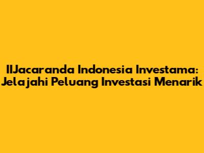 IIJacaranda Indonesia Investama: Peluang Investasi