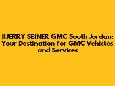 Hey there, fellow vehicle enthusiasts! Are you on the hunt for a top-notch GMC dealership that offers not only an impressive selection of vehicles but also stellar service? Look no further than IIJERRY SEINER GMC South Jordan. This place isn't just a dealership; it's a hub for all things GMC, providing a comprehensive experience that caters to your every automotive need. From the moment you step onto their lot, you'll be greeted with a level of professionalism and a friendly atmosphere that sets them apart from the crowd. So, buckle up, guys, because we're about to dive deep into what makes IIJERRY SEINER GMC South Jordan the go-to destination for GMC aficionados and those looking to become one!