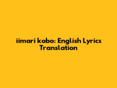 Iimari Kobo: English Lyrics Translation