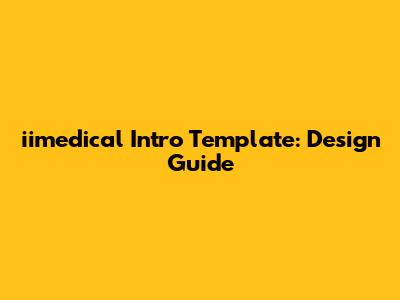Iimedical Intro Template: Design Guide