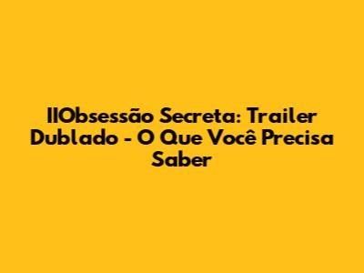 IIObsessão Secreta: Trailer Dublado - O Que Você Precisa Saber
