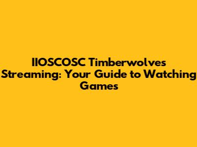 IIOSCOSC Timberwolves Streaming: Your Guide To Watching Games