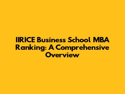 IIRICE Business School MBA Ranking: A Comprehensive Overview