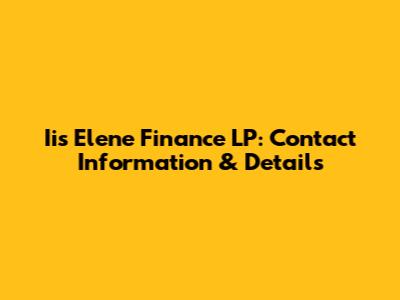 Iis Elene Finance LP: Contact Information & Details