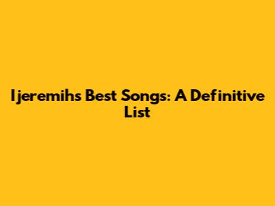 Ijeremih's Best Songs: A Definitive List