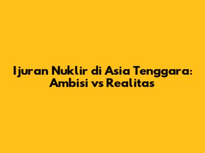 Ijuran Nuklir Di Asia Tenggara: Ambisi Vs Realitas