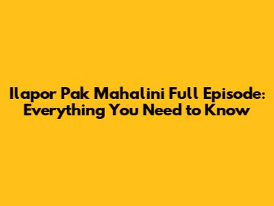 Ilapor Pak Mahalini Full Episode: Your Complete Guide