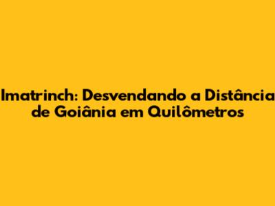 Imatrinch: Distância De Goiânia Em Quilômetros
