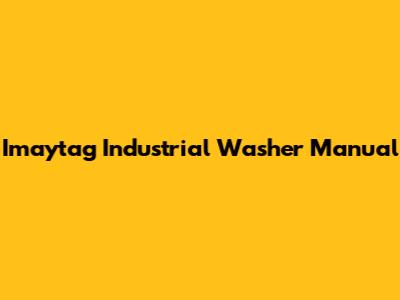 Imaytag Industrial Washer Manual: Your Go-To Guide