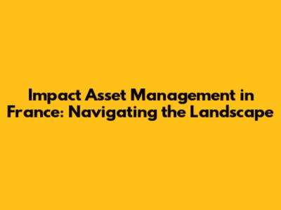 Impact Asset Management In France: A Comprehensive Guide