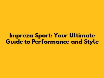 Impreza Sport: Your Guide To Performance And Style