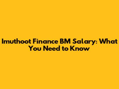 Imuthoot Finance BM Salary: What You Need To Know