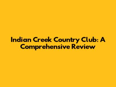 Indian Creek Country Club: A Comprehensive Review