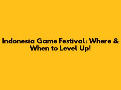 Indonesia Game Festival: Where & When To Level Up!