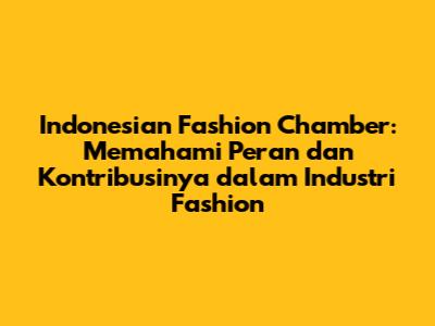 Semoga artikel ini bisa memberikan pemahaman yang lebih baik tentang apa itu Indonesian Fashion Chamber dan mengapa organisasi ini begitu penting bagi industri fashion Indonesia. Jangan lupa untuk terus mendukung produk-produk fashion lokal dan ikut memajukan industri kreatif Indonesia!