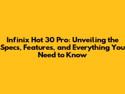 Infinix Hot 30 Pro: Specs, Features & What You Need To Know