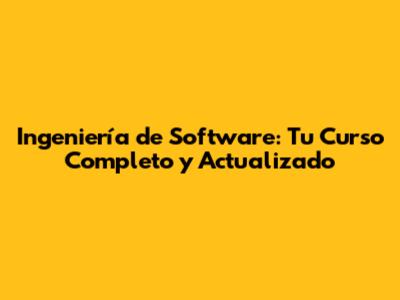 Ingeniería De Software: Tu Curso Completo Y Actualizado
