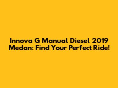 I hope this guide has been helpful in your quest to find the perfect Innova G Manual Diesel 2019 in Medan. Good luck, and happy driving!