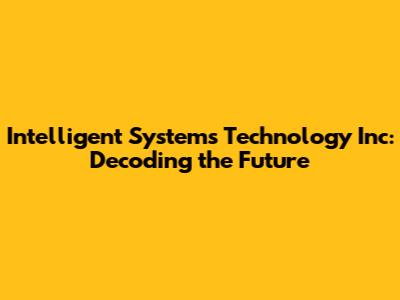 Intelligent Systems Technology Inc: Decoding The Future