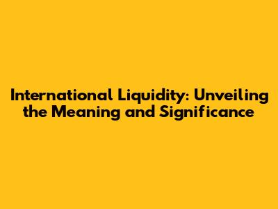 Why International Liquidity Matters: Its Significance Explained