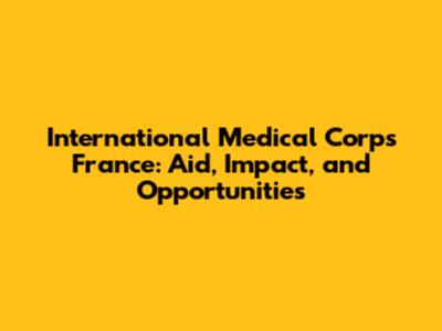International Medical Corps France: Aid, Impact, And Opportunities