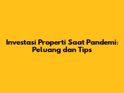 Investasi Properti Saat Pandemi: Peluang Dan Tips