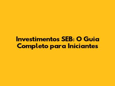Investimentos SEB: O Guia Completo Para Iniciantes