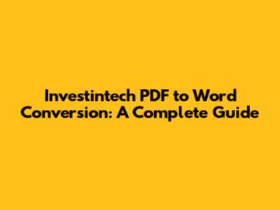 Investintech PDF To Word Conversion: A Complete Guide