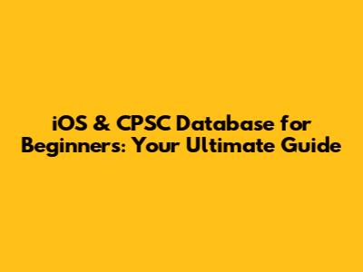 IOS & CPSC Database For Beginners: Your Ultimate Guide