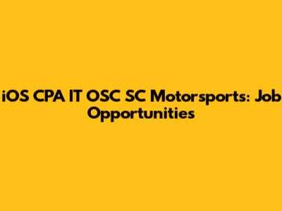 IOS CPA IT OSC SC Motorsports: Job Opportunities