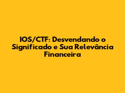 IOS/CTF: Entenda O Significado E Impacto Financeiro