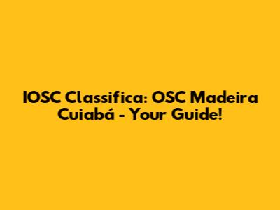 Want to learn more about IOSC Classifica and OSC Madeira Cuiabá? Here are a few tips:
