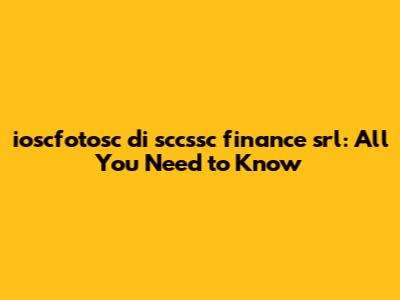 Ioscfotosc Di Sccssc Finance Srl: All You Need To Know