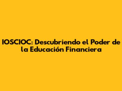 IOSCIOC: Desbloqueando El Poder De La Educación Financiera