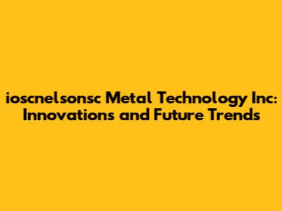 Ioscnelsonsc Metal Tech: Innovations & Future Trends