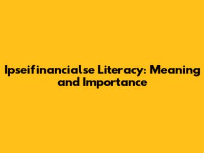 Ipseifinancialse Literacy: Meaning And Importance