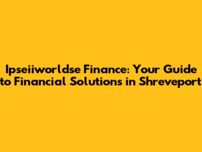 Ipseiiworldse Finance: Your Guide To Financial Solutions In Shreveport