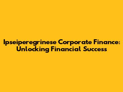 Ipseiperegrinese Corporate Finance: Unlocking Financial Success